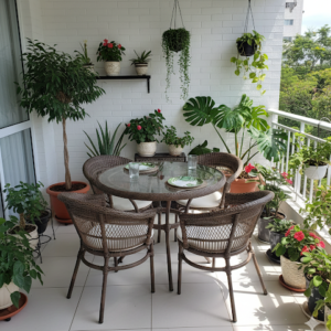 Mesa c/Poltronas Fibra Sintética Tampo Madeira